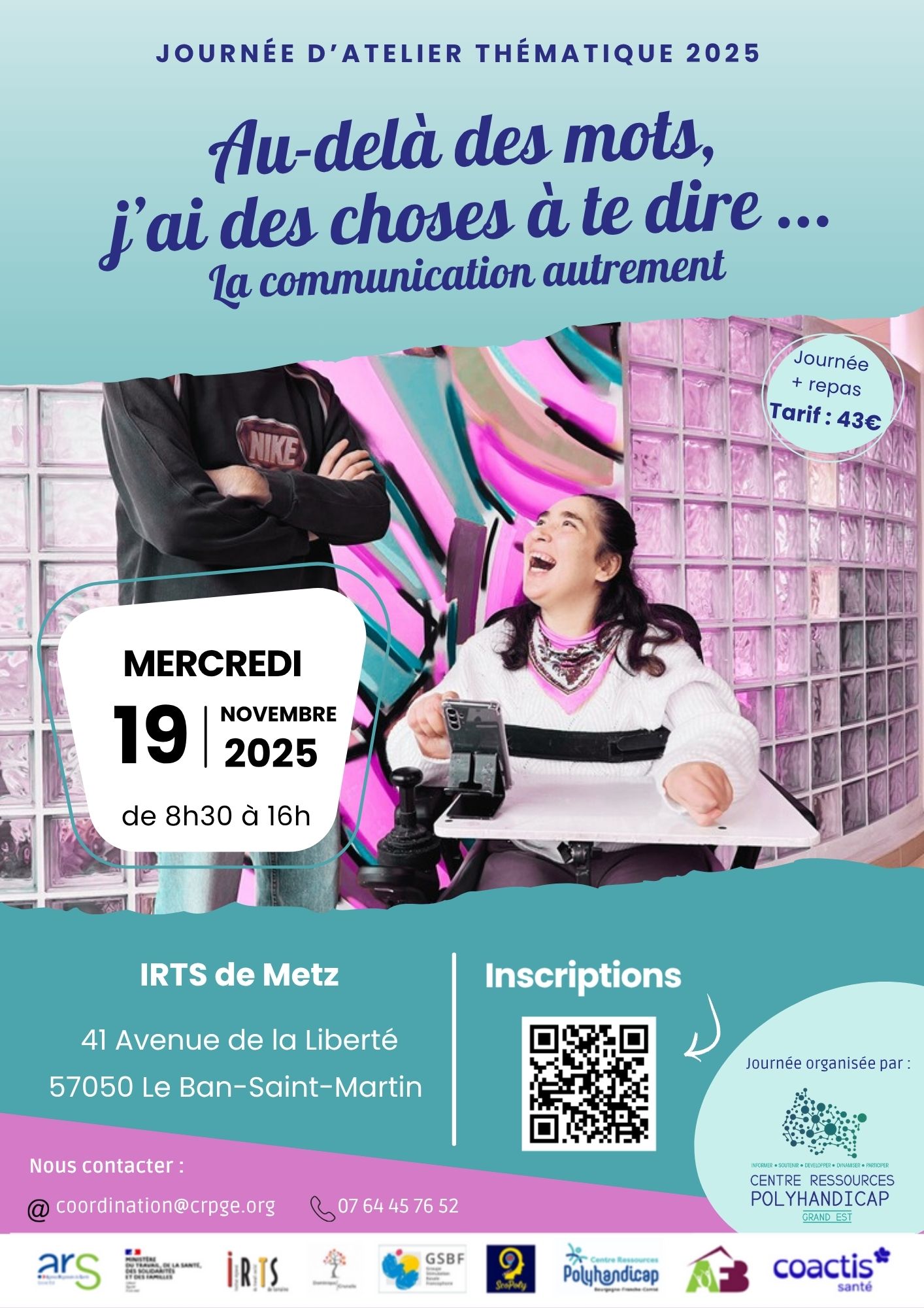 Le Centre Ressources Polyhandicap Grand Est organise le mercredi 19 novembre 2025 une journée atelier sur la thématique de :