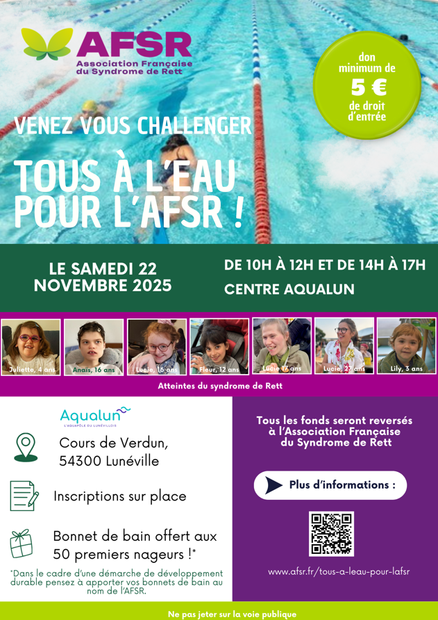 L’Association Française du Syndrome de Rett – AFSR, organise le challenge « Tous à l’eau pour l’AFSR ! »